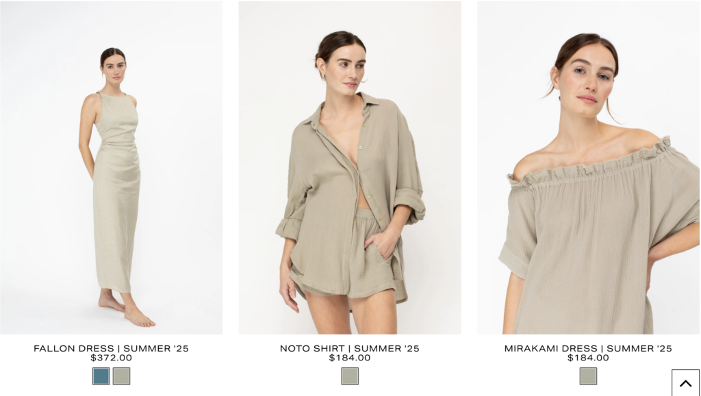 Their collections often feature statement prints, rich palettes, and styles inspired by wherever the sisters’ wanderlust takes them—be it Fiji’s turquoise waters or the bohemian surf culture of California.