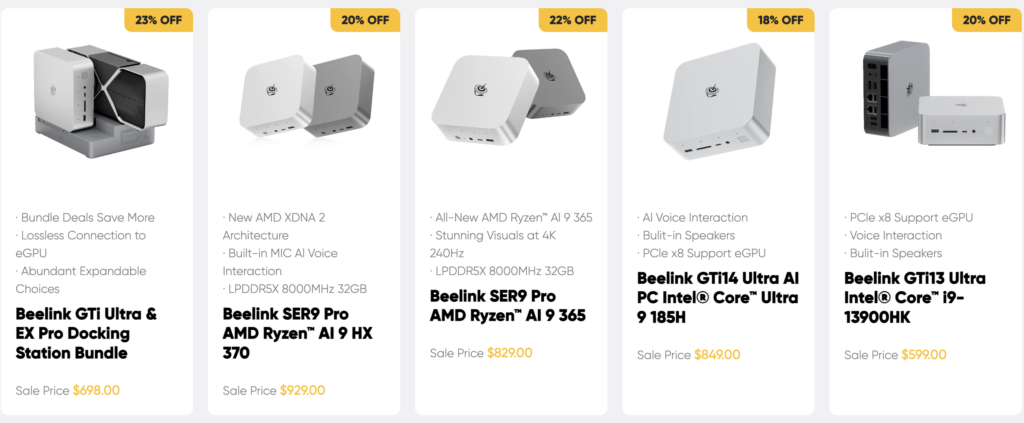 Every Bee-Link mini PC combines a sleek, space-saving housing with upgraded hardware components, making them perfect for users who value both form and function. Beelink’s latest GTR9 Pro, for instance, packs an AMD Ryzen AI Max+ 395, dual 10GbE ports, and support for up to four 8K displays in a metal chassis—an incredible feat for a mini PC.