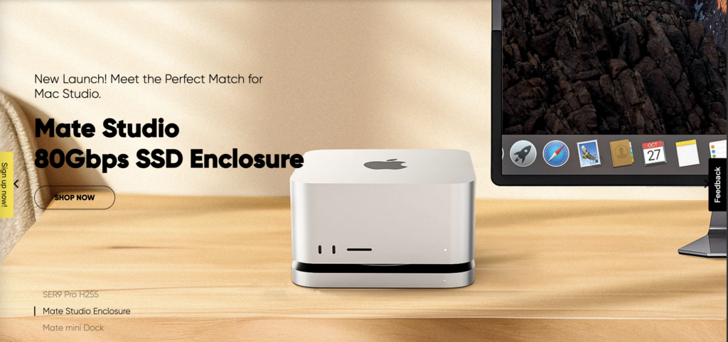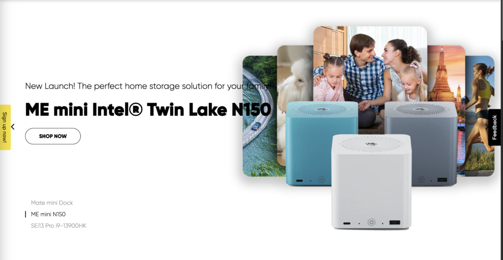 With multiple series like GT, SER, SEi, and EQ, Bee-Link mini PCs offer everything from budget options to workstation-grade builds. The ME Mini (NAS-style) delivers silent, vertical airflow cooling and support for six M.2 SSDs — great for home media or file storage.