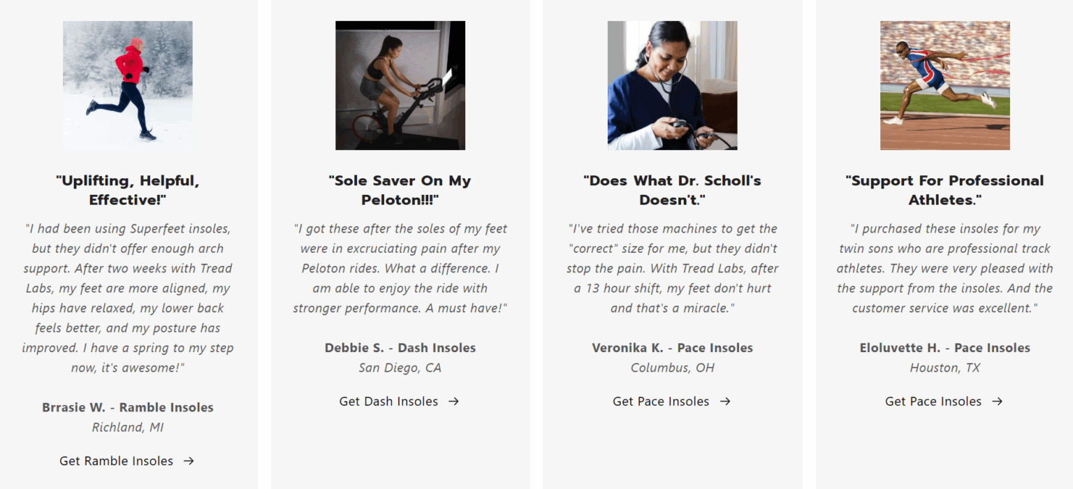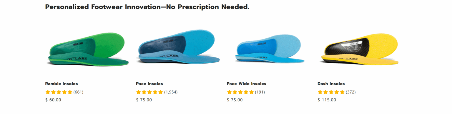 Whether you’re an athlete pushing limits, a professional on your feet all day, or someone who simply values comfort, Tread Labs has a product designed for you. Their customizable fit options and different arch heights ensure that every customer can find their ideal support level. This tailored approach sets them apart from standard insoles and footwear brands.