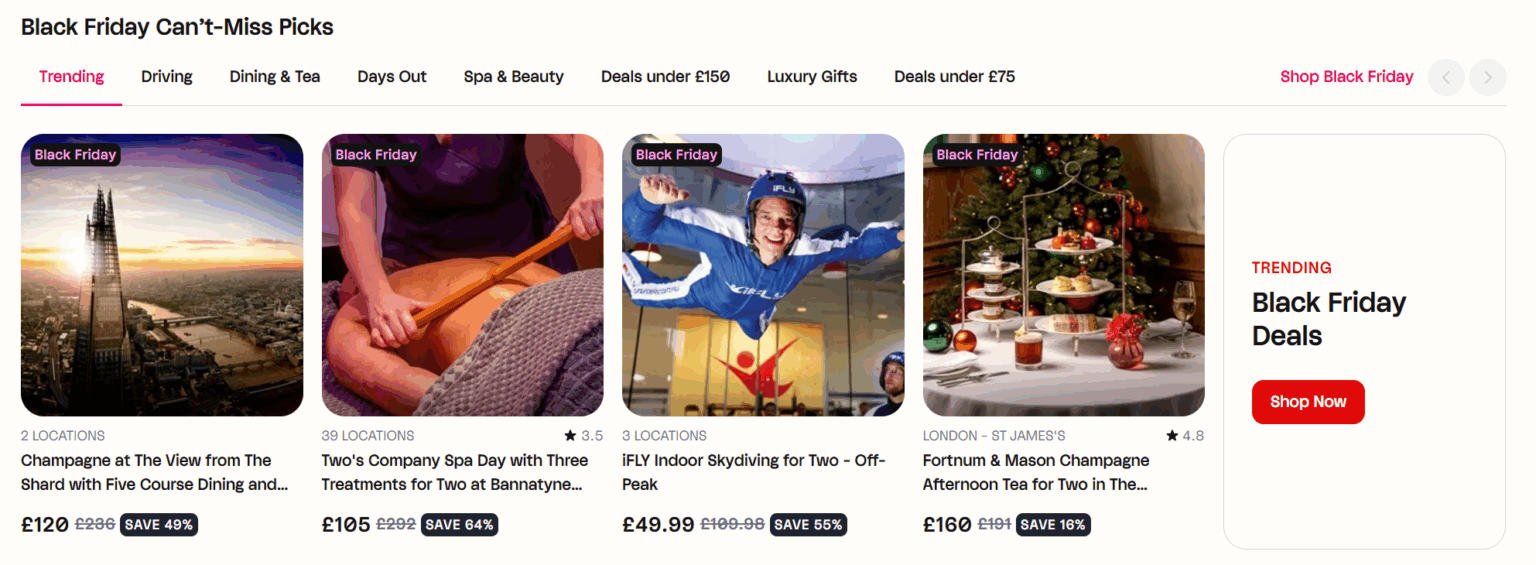 Looking for the perfect gift or a one-of-a-kind experience to remember? Virgin Experience Days offers thousands of curated experiences across the UK, from skydiving and supercar drives to luxury spa escapes and fine-dining adventures. Whether you’re treating someone special or rewarding yourself, this is where unforgettable memories begin.