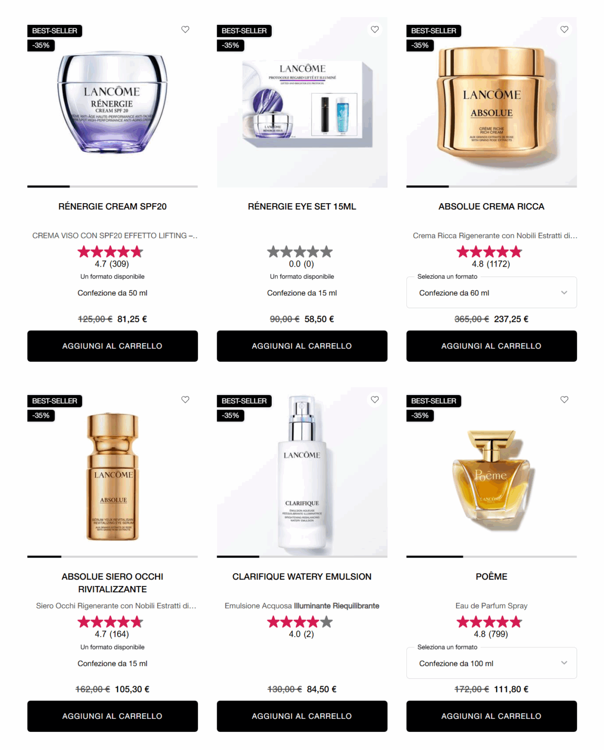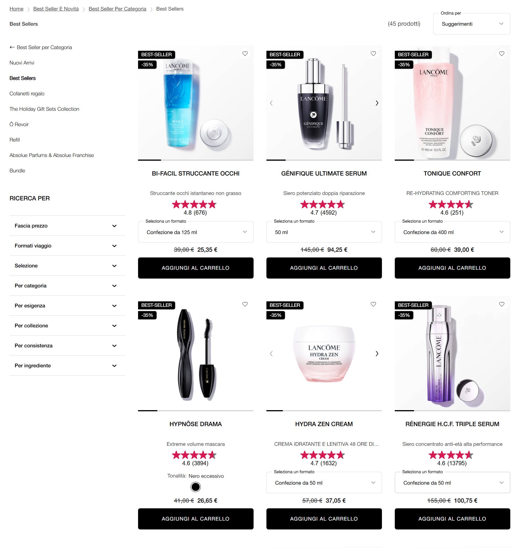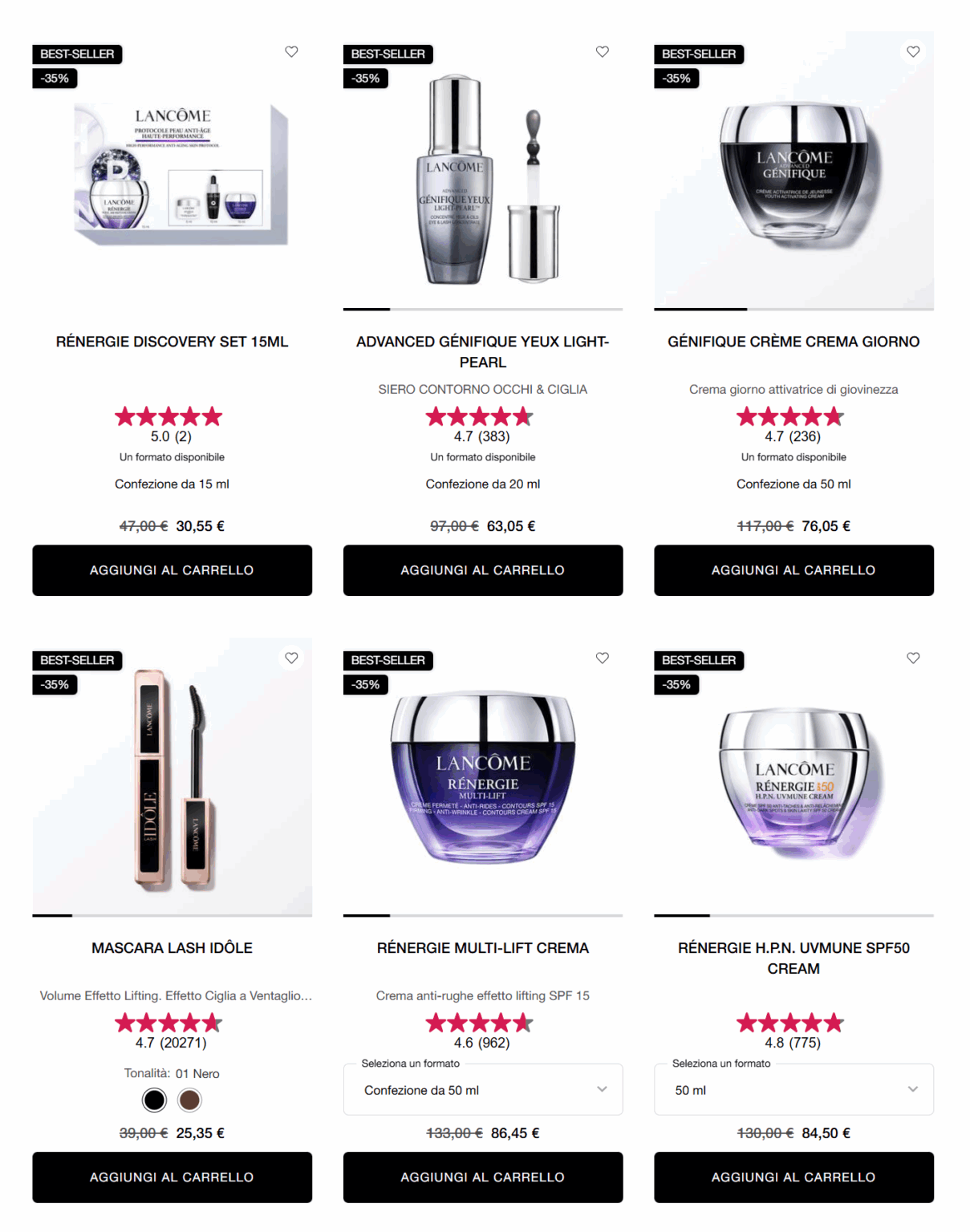 Una pelle luminosa e curata inizia con prodotti efficaci e formulati con precisione. Le linee skincare di Lancôme, come Advanced Génifique e Rénergie, sono sviluppate con tecnologie all’avanguardia e ingredienti potenti. Che tu voglia ridurre le rughe, migliorare la luminosità o mantenere la pelle idratata, troverai una soluzione adatta a ogni esigenza.